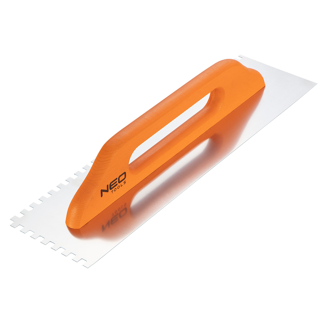 NEO fogazott simító 0,7 mm vastag lappal, keménységű rozsdamentes nemesacél lap hosszú élettartamot biztosít. A munka kényelmét növeli a kézreálló, erős bükkfából készült, lakkozással védett nyél. A NEO márka a professzionális igényeket is kielégíti.