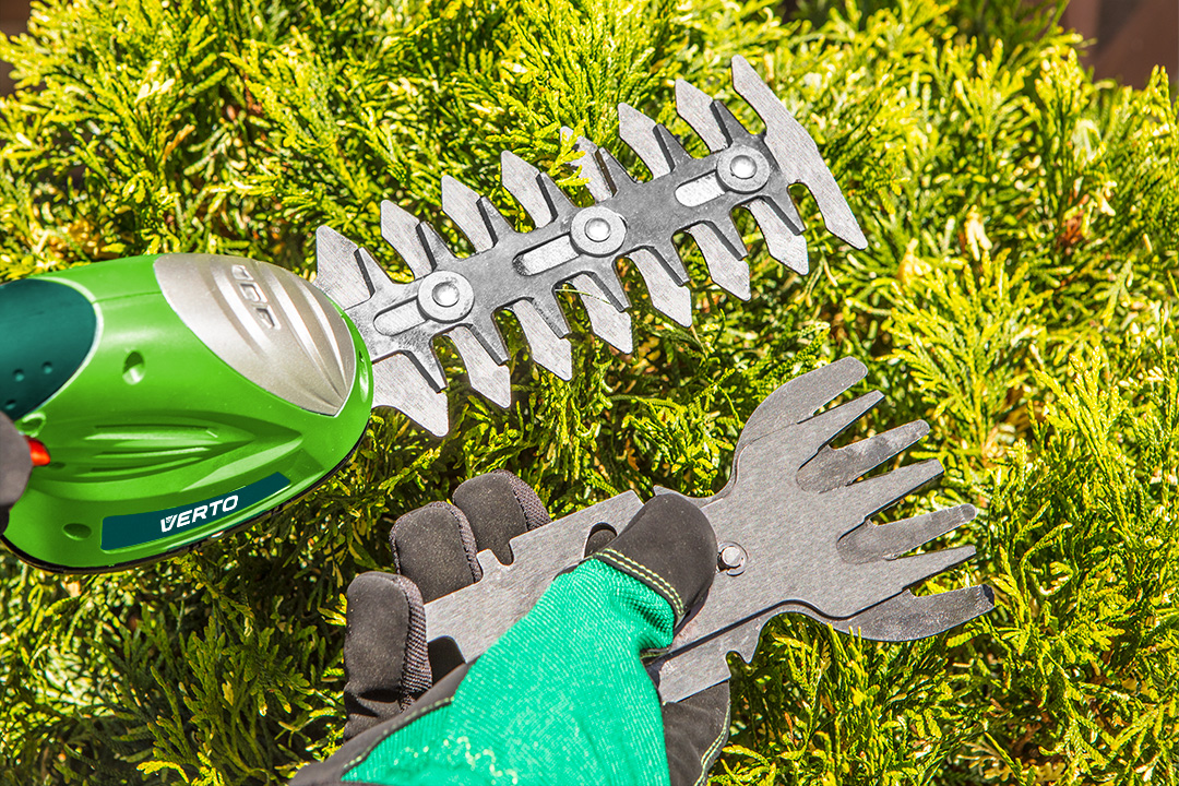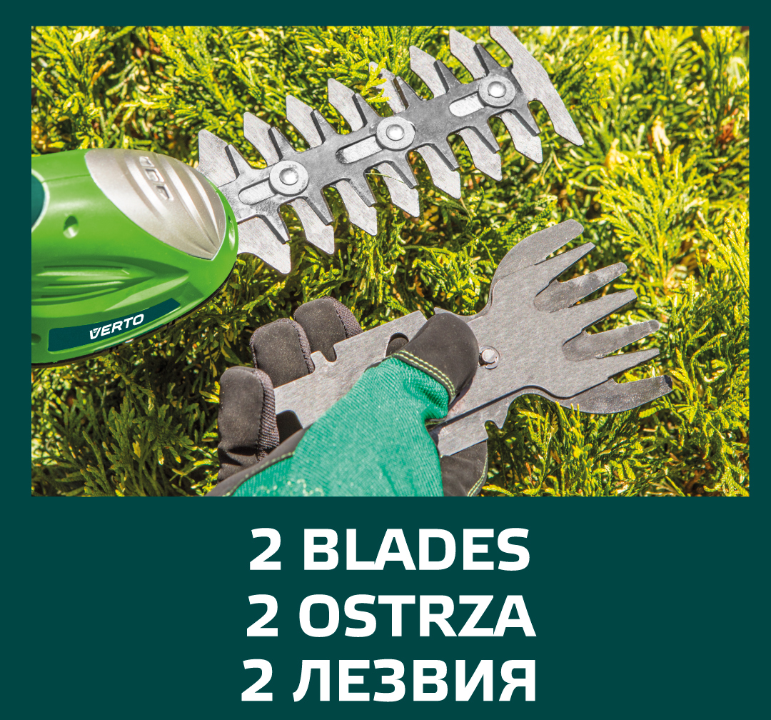 A VERTO akkumulátoros fűnyíró és sövényvágó olló (kat. sz. 52G311) energiaellátásáért 7,2 V-os, 1,3 Ah-s Li-ion akkumulátor felel, lehetővé téve a 80 mm-s vágásszélességet (fűnyíró olló), illetve a 12 mm-es vágható vastagságot (sövényvágó olló). A CE tanúsítvány igazolja az európai biztonsági normáknak való megfelelést. A VERTO márka ajánlata elektromos kéziszerszámokat és tartozékokat tartalmaz az ezermesterek számára.