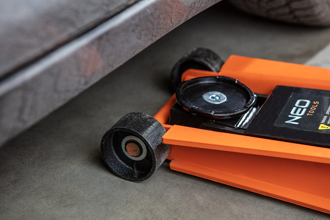 A 3T NEO 11-732 alacsony profilú emelő egy professzionális termék, amely minden műhelyben nélkülözhetetlen. A termék kerekekkel rendelkezik, amelyek megkönnyítik a szállítást és az autó alá helyezést, a fogantyú pedig lehetővé teszi, hogy az emelőt mélyen az autó alá helyezzük. Az emelő precízen emeli és süllyeszti, ami garantálja a felhasználó biztonságát és kényelmét.