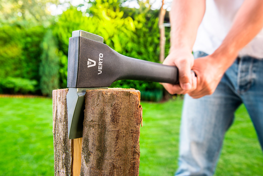 VERTO Univerzális fejsze (ref. szám 05G100) tömege 620 g és teljes hossza 365 mm. Főként kerti és erdei munkákhoz. A 410 g tömegű fejet PTFE bevonat borítja, védve a korróziótól. Nagyon szívós éle ellenáll a csorbulásnak. Nyele üvegszálból készült, ami nagy mértékben növeli ellenálló képességét a hőmérséklet változásokkal szemben, a nedvességgel és a mechanikus sérülésekkel szemben, ami növeli a fejsze szívósságát. A csúszásgátló bevonattal ellátott ergonomikus markolat biztosítja a kényelmes és biztonságos munkavégzést. Új, még tartósabb kötés a a fej és a nyél között. A fejsze műanyag akasztóval rendelkezik, ami megkönnyíti a szerszám tárolását.