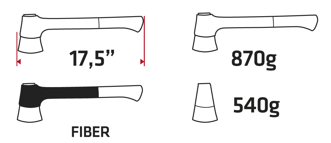 VERTO Univerzális fejsze (ref. szám 05G101) tömege 870 g és teljes hossza 450 mm. Főként kerti és erdei munkákhoz. A 540 g tömegű fejet PTFE bevonat borítja, védve a korróziótól. Nagyon szívós éle ellenáll a csorbulásnak. Nyele üvegszálból készült, ami nagy mértékben növeli ellenálló képességét a hőmérséklet változásokkal szemben, a nedvességgel és a mechanikus sérülésekkel szemben, ami növeli a fejsze szívósságát. A csúszásgátló bevonattal ellátott ergonomikus markolat biztosítja a kényelmes és biztonságos munkavégzést. Új, még tartósabb kötés a a fej és a nyél között. A fejsze műanyag akasztóval rendelkezik, ami megkönnyíti a szerszám tárolását.