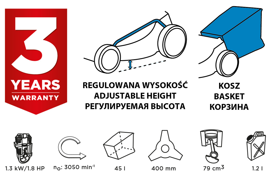 Benzines fűnyíró GRAPHITE (ref 52G670) hatalommal 1.8 KM fűnyírásra tervezték. A készülék 5 fokos vágási magassággal van felszerelve, 25 és 65 mm között. Kosár kapacitással 45 l összegyűjti a kaszált füvet, ezzel megtakarítva a gereblyézés és begyűjtés munkáját. A kaszaszélesség 400 mm.