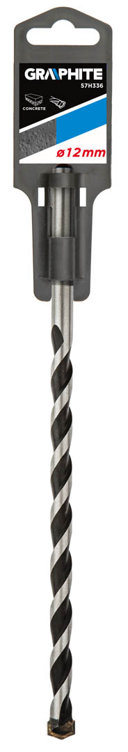 GRAPHITE hengeres szárú betonfúró lepkeszárny alakú vídiabetéttel. Így fúráskor betonban, kerámiákban nem kell tartani a fúróhegy elcsúszásától a fúrás kezdeti szakaszában.