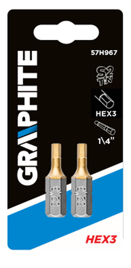Az ¼”hajtófészkes GRAPHITE csavarhúzó bitek csavarok be- és kicsavarására szolgálnak. A bit titán-nitrid bevonata (aranyszínű) jelentősen megnöveli a szerszám élettartamát a keménység megnövelésével a bit és a csavar érintkezésénél.
