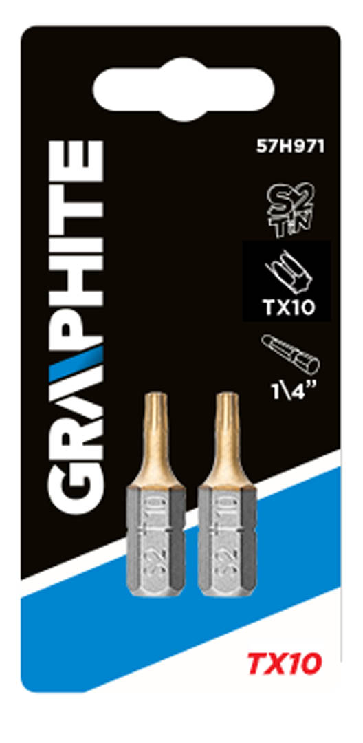 Az ¼”hajtófészkes GRAPHITE csavarhúzó bitek csavarok be- és kicsavarására szolgálnak. A bit titán-nitrid bevonata (aranyszínű) jelentősen megnöveli a szerszám élettartamát a keménység megnövelésével a bit és a csavar érintkezésénél.