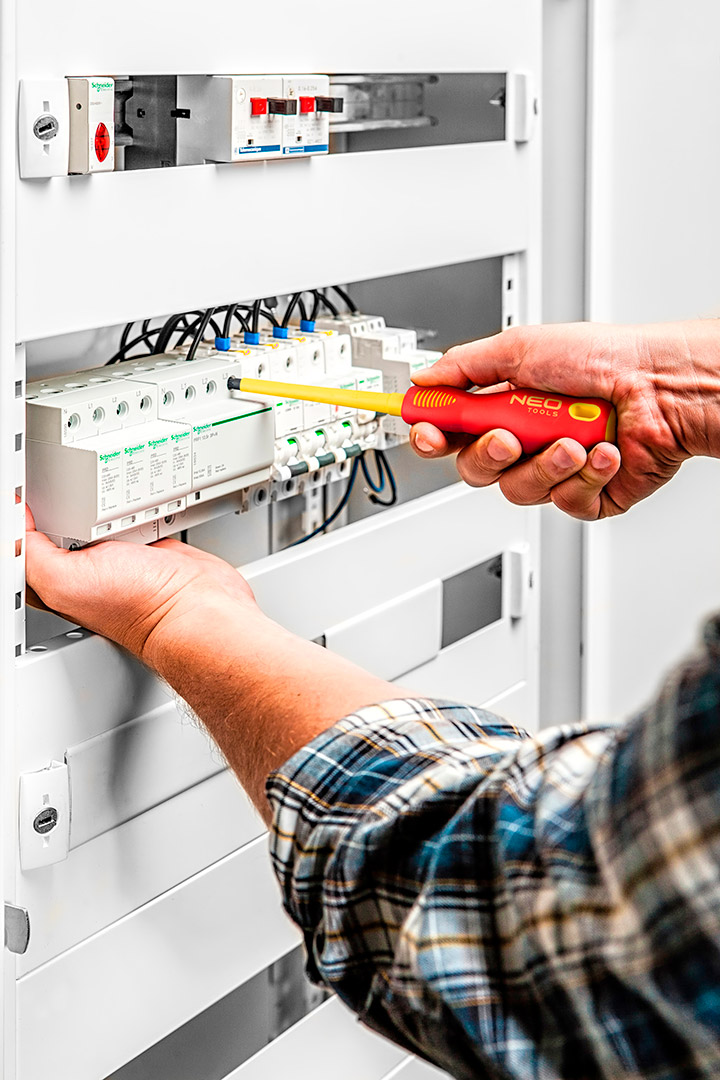 Lapos és kereszt csavarhúzó 1000V (nr ref. 04-222) NEO. Alkalmassági tesztje 1000 V feszültségen került elvégzésre. A csavarhúzó csúcs tartós CrV acélból készült. A csúcsok munkafeje hőmegmunkálva, melynek köszönhetően megfelelő a keménysége és hajlítószilárdsága. Speciális, S típusú biztosítékokhoz kifejlesztett csúcs. A profilozott hüvelykujj támasztós, háromszöges kialakítású markolat csökkenti a kéz megterhelését a munka közben és megkönnyíti az optimális nyomaték elérését. A kétanyagú markolat megakadályozza a kicsúszást és ellenáll a vegyszerek, olajok és zsírok hatásának. A szerszám minőségét a gyártó 26 éves garanciája igazolja.