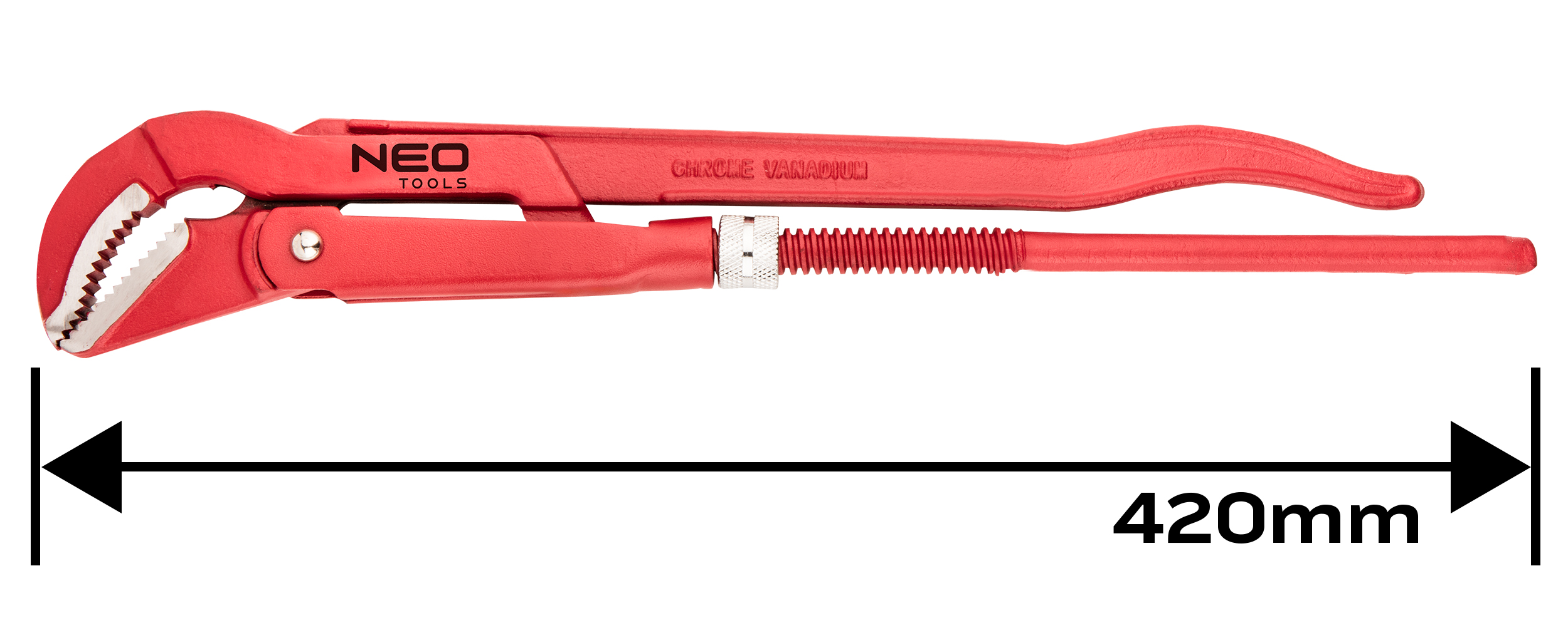 A NEO „45” tip. csőfogó csövek, szelepek be- és kicsavarására szolgál. A pofák belső oldalának recézettsége jó fogást biztosít a kör keresztmetszetű csöveken. Nagy ellenállóképességű, a szerszámnak hosszú élettartamot biztosító króm-vanádium acélból készült. . A NEO márka a professzionális igényeket is kielégíti.