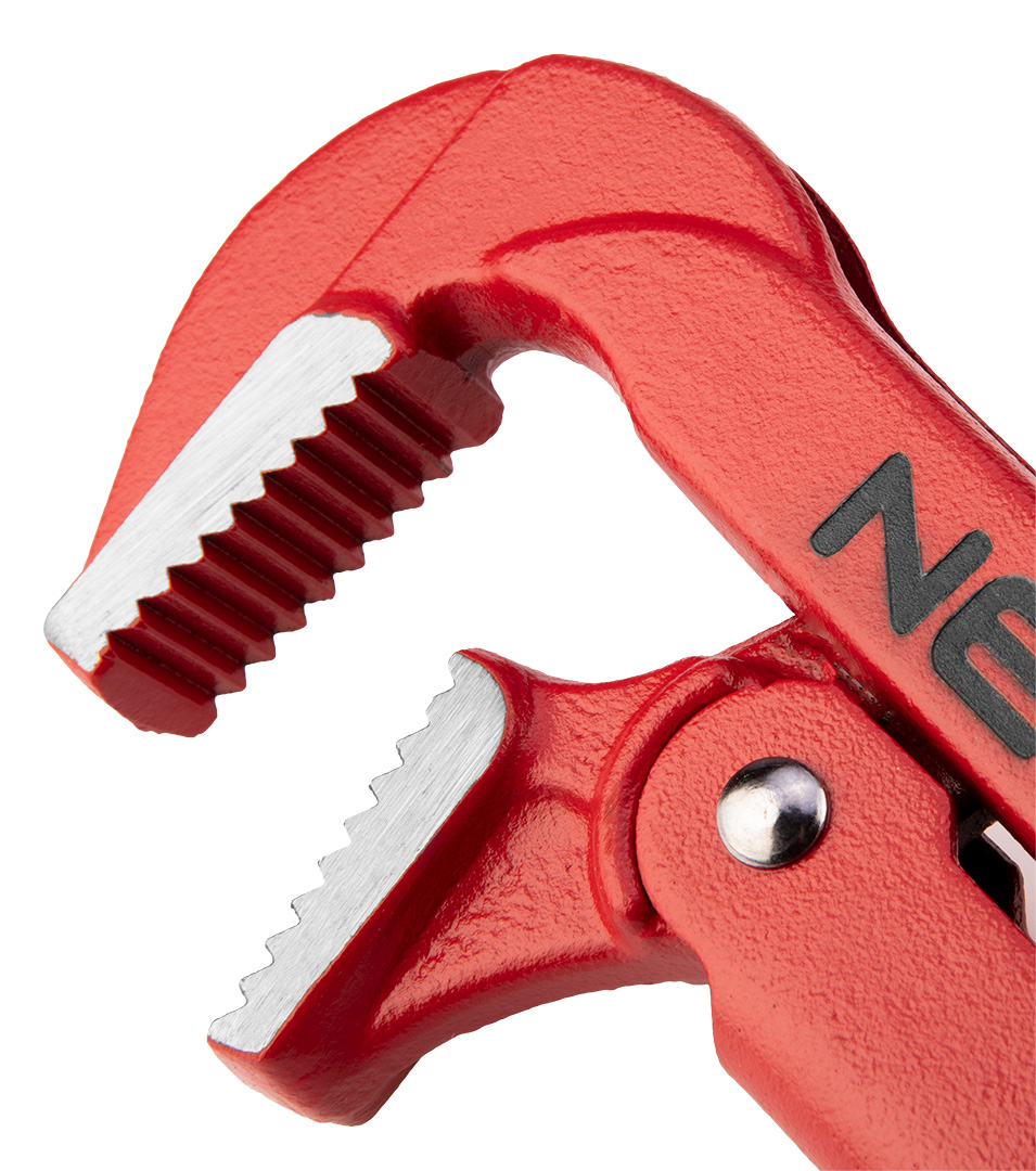 A NEO „90” tip. csőfogó csövek, szelepek be- és kicsavarására szolgál. A pofák belső oldalának recézettsége jó fogást biztosít a kör keresztmetszetű csöveken. Nagy ellenállóképességű, a szerszámnak hosszú élettartamot biztosító króm-vanádium acélból készült. . v