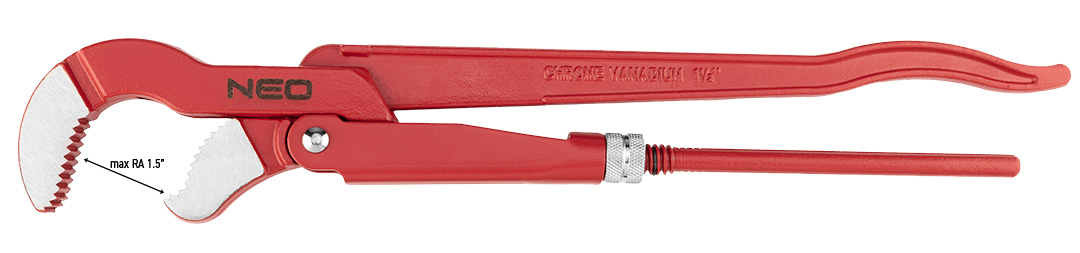 A NEO „S” tip. csőfogó csövek, szelepek be- és kicsavarására szolgál. A pofák belső oldalának recézettsége jó fogást biztosít a kör keresztmetszetű csöveken. Nagy ellenállóképességű, a szerszámnak hosszú élettartamot biztosító króm-vanádium acélból készült. . A NEO márka a professzionális igényeket is kielégíti.