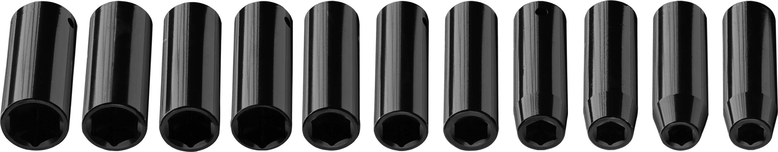 NEO ½”-os, 11 elemes gépi dugókulcs készlet. Hatlapú gépi dugókulcsokat tartalmaz a népszerű, 10-24 mm közötti méretekben. A hosszú dugókulcsok használhatók a mély fészekben elhelyezkedő csavarokhoz is. Nagy ellenállóképességű króm-vanádium acélból készültek. Meghosszabbított élettartamú dugókulcsok a forró kovácsolási technológiának köszönhetően. Praktikus, tárolásra szolgáló fémkazettába csomagolva. A NEO márka a professzionális igényeket is kielégíti.