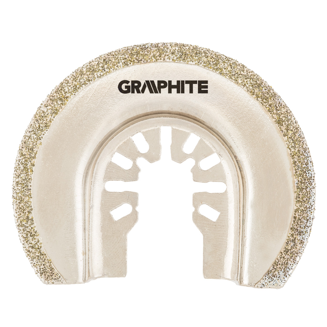A GRAPHITE szegmens fűrészlap galván bevonat gyémánt szemcseanyaggal szemcsékkel szórt élű. Lehetővé teszi a csempék precíz vágását egyenes vonal mentén és a fuga eltávolítását a GRAPHITE multifunkcionális szerszámgéppel.