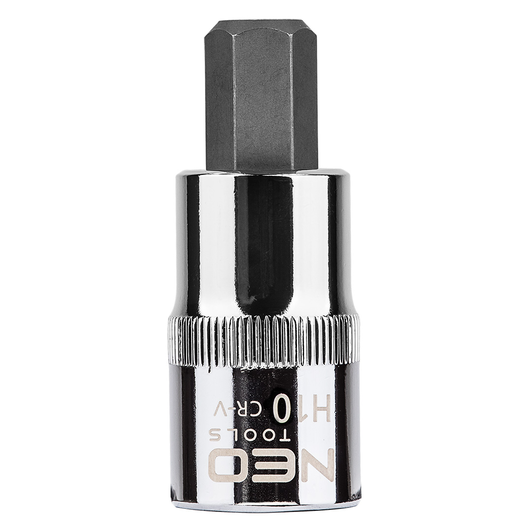 NEO imbusz bit ½”-os fészkű dugófeltéten, 55 mm hosszú, a DIN 7422 szabványnak megfelelő. A dugófeltét nagy ellenállóképességű króm-vanádium acélból készül. A hatlapú bit kiváló minőségű S2 acélötvözetből készül. A szerszám minőségét bizonyítja a TÜV tanúsítvány és a gyártó által nyújtott 25 éves jótállás. A NEO márka a professzionális igényeket is kielégíti.