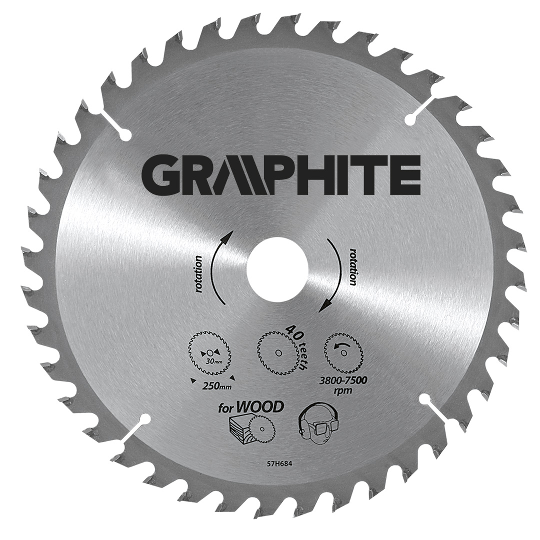 A GRAPHITE vídiabetétes fűrésztárcsa a hőmérsékletnek és a deformálódásnak igen ellenálló MN65-ös mangán acélötvözetből készül. Az YG6A vídiabetétes fogazás lehetővé teszi a fa és faalapú anyagok, mint pl. a rétegelt lemez, a forgácslap vagy az MDF lapok nagyoló vágását. A csomagolásban megtalálható szűkítő gyűrűk lehetővé teszik a fűrésztárcsák alkalmazását a fűrészgép típusok többségéhez.