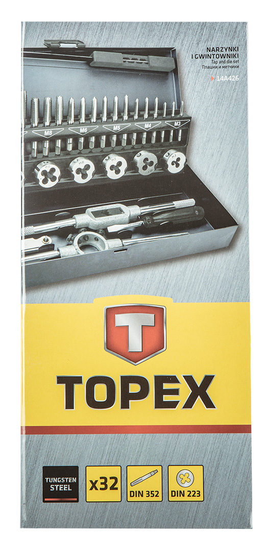 A TOPEX 32 részes menetmetsző és menetfúró készlet remek megoldás minden barkácsoló számára. A praktikus hordtáskában a menetfúró és a menetmetsző hajtó is megtalálható. A menetmetsző és menetfúró szerszámok kiváló minőségű volfrámacélból, a DIN 233 és a DIN 352 szabvánnyal összhangban készülnek, ez garantálja megbízhatóságukat. A TOPEX márka ezermestereknek készül.