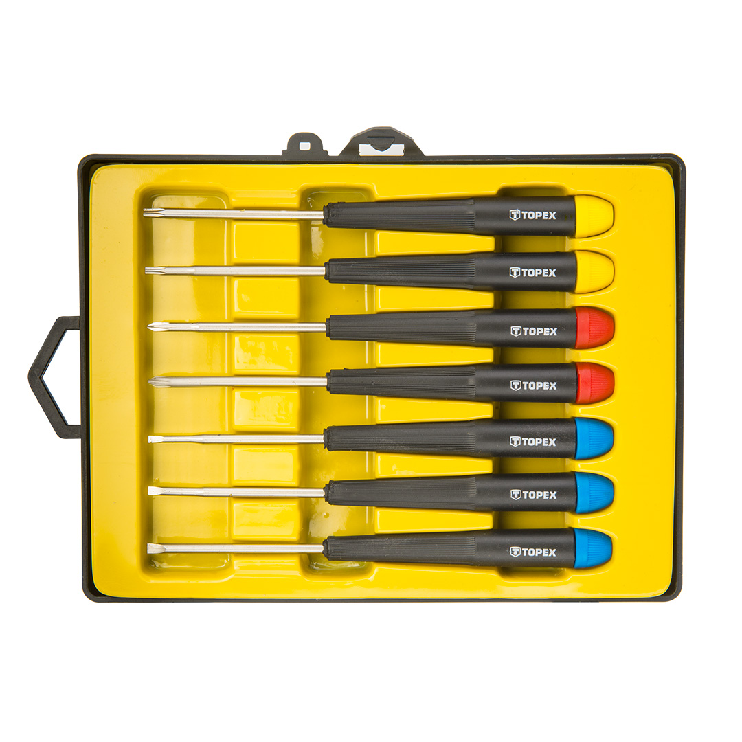 A TOPEX műszerész Torx csavarhúzó készlet kiváló minőségű, a szerszámnak hosszú élettartamot biztosító króm-vanádium acélból készül. Az ergonómikus műanyag markolat biztosítja a munkavégzés kényelmét. A praktikus műanyag csomagolás megkönnyíti a tárolását. A TOPEX márka ezermestereknek készül.