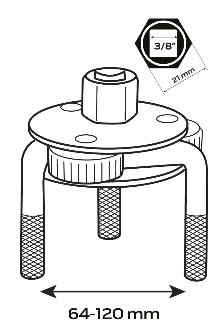 NEO olajszűrőkulcs profi szervizek és autószervizek számára, valamint haladó amatőrök számára. Fémházas külső olajszűrők hatékony és helyes összeszereléséhez tervezett kulcs. 75-120 mm átmérőjű szűrőkhöz tervezték. A készlet 3/8″ és 1/2″ redukciót tartalmaz.