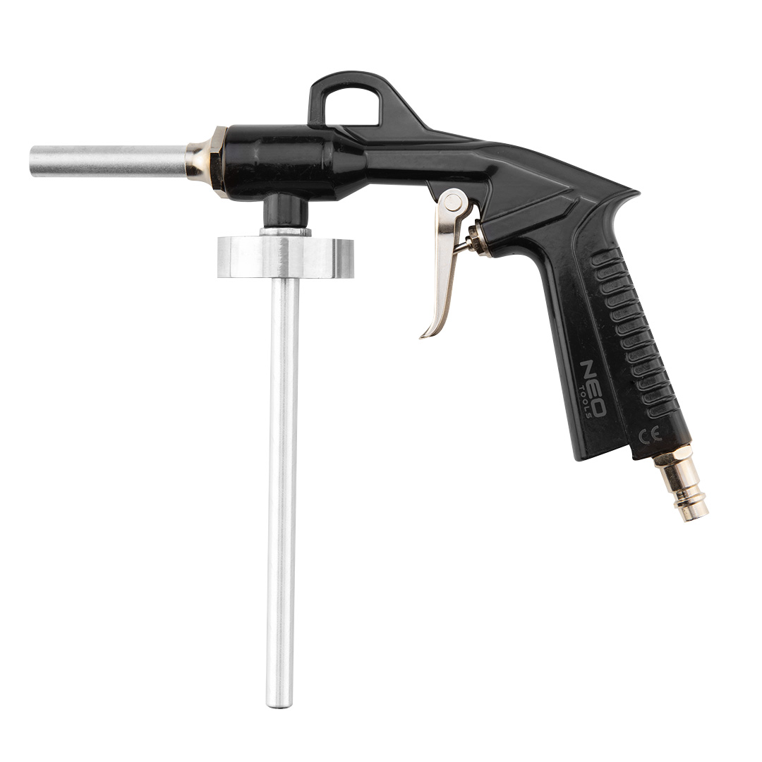 NEO alvázvédő pisztoly. Csavaros alvázvédő flakonhoz. A könnyű alumínium ház kényelmesebbé teszi vele a munkát. Maximális üzemi nyomása 6 bar. Praktikus füllel a felakasztáshoz. Többek között gépkocsi alvázvédelemhez, karbantartáshoz. A CE tanúsítvány bizonyítja a szerszám kiváló minőségét. A NEO márka a professzionális igényeket is kielégíti.