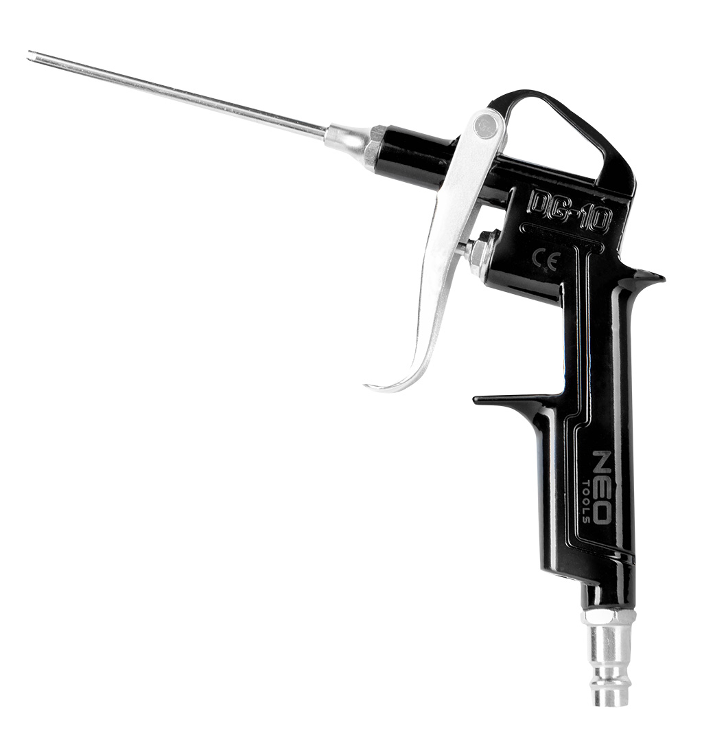 NEO hosszú alumínium lefúvató pisztoly 93 mm-es fúvókával. Maximális üzemi nyomása 12 bar. Praktikus füllel a felakasztáshoz. Általános felhasználású lefúvató szerszám műhelyekbe, többek között szűrők tisztításához, szennyeződések lefúvatásához, sűrített levegős szárításhoz. A CE tanúsítvány bizonyítja a szerszám kiváló minőségét.