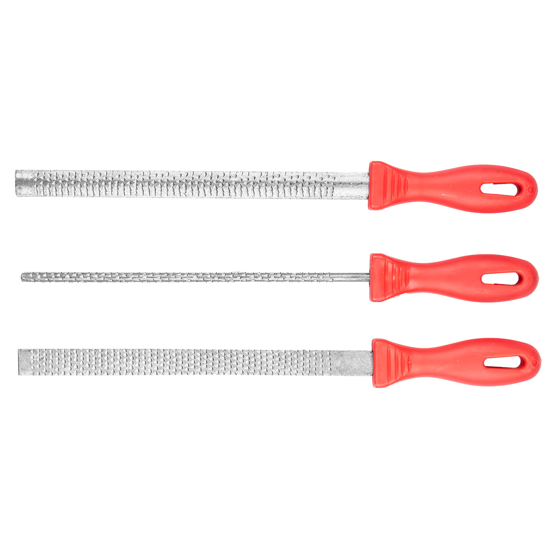 TOP TOOLS fa reszelőkészlet (ref. 06A730). Elsősorban precíziós famegmunkáláshoz. Három univerzális forma lehetővé teszi az alkalmazások széles körét. Az ergonomikusan formázott műanyag fogantyú kényelmesen fekszik a kézben, magas szintű munkakomfortot biztosít.