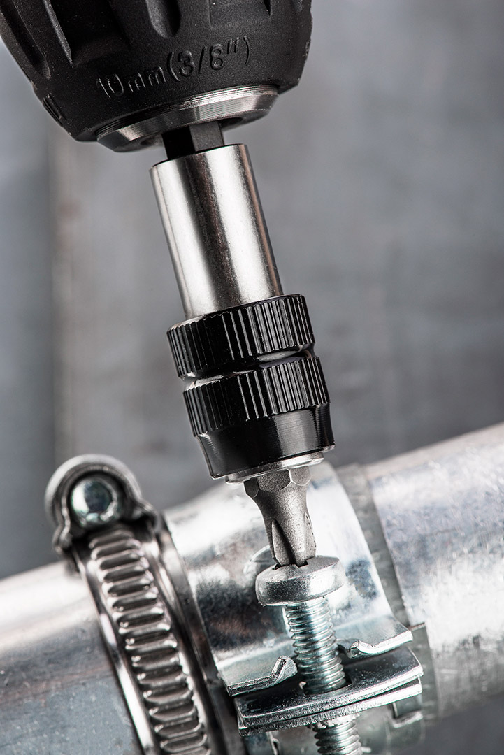 GRAPHITE mágneses befogószár 1/4″-os csavarhúzó bitekhez. Az erős mágnes lehetővé teszi használatát minden fajta csavarhúzó bittel. A markolat többletfunkciója a 15°-os kitérést lehetővé tevő csukló, ami megkönnyíti a munkát a nehezen hozzáférhető helyeken. Felépítése lehetővé teszi a gyors bitcserét, nem szükséges a csavarozó befogójának meglazítása.