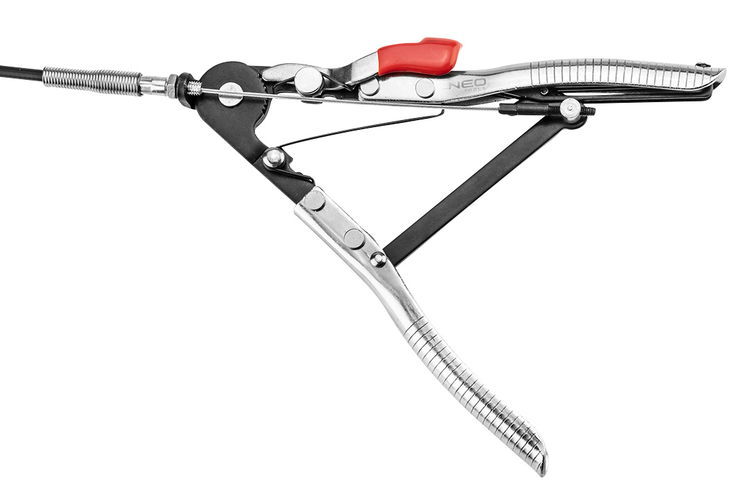 NEO tömlőgyűrűfogó hosszabbítóval, a 630 mm hosszú elasztikus résznek köszönhetően nagyon beválik tömlőgyűrűk fel- és leszerelésére nehezen hozzáférhető helyeken. Automatikus reteszeléssel, ami megkönnyíti a rugalmas tömlőgyűrűk kezelését. A 0-45 mm-es szorítási tartomány alkalmassá teszi a gépjárművekben leggyakrabban használt tömlőgyűrűk szerelésére. A termék kiváló minőségét és megbízhatóságát bizonyítja a TÜV Rheinland tanúsítvány. A NEO szerszámok megfelelnek a szakemberek elvárásainak. A NEO márka a professzionális igényeket is kielégíti.